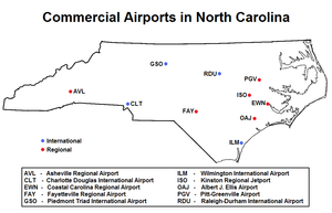 This is a list of airports in North Carolina, grouped by type and sorted by location.